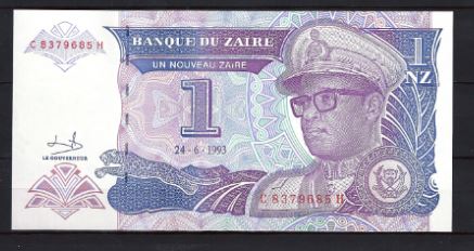 Zaire 1 Nouveau Zaire 1993 P 52-a UNC. nummer kan afwijken