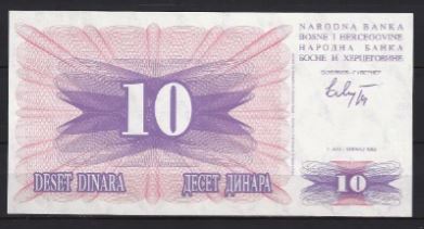 Bosnie-Herzegovina 10 Dinara 1992 unc. nummer kan afwijken