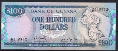 Guyana 100 Dollars 1989 unc. nummer kan afwijken. P 28-2