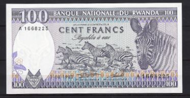 Rwanda 100 Francs 1982 unc. nummer kan afwijken. P 18