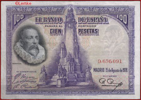Spanje 100 Pesetas 1928. Prachtig gebruikt biljet (PR). nummer kan afwijken
