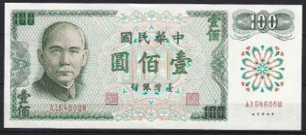 Taiwan-China 100 Yuan 1972 unc. nummer kan afwijken
