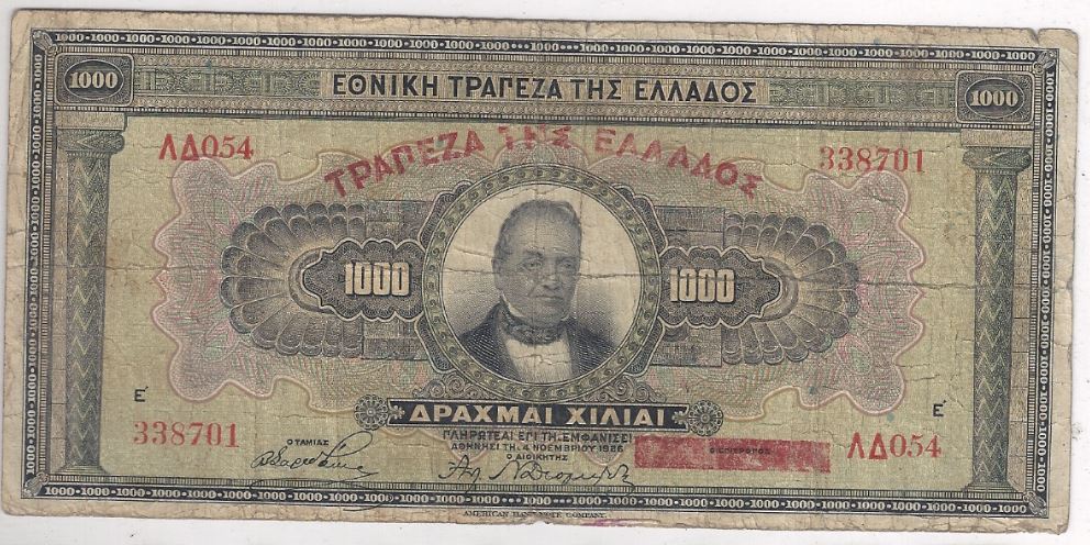 Griekenland, 1000 Drachmai 1926. gebruikt biljet