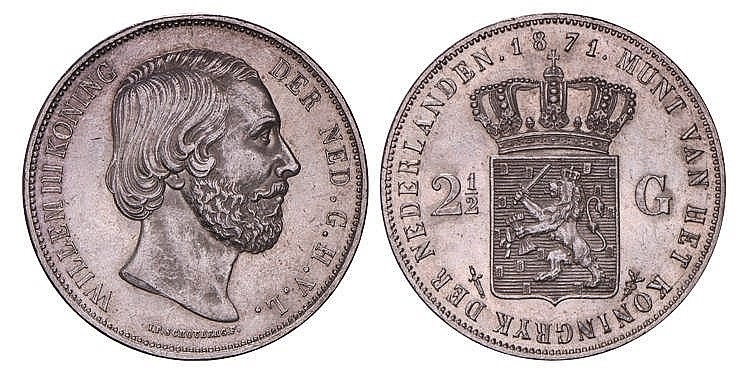 Nederland 2 1/2 gulden 1865b Willem III ZFR/PR