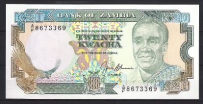 Zambia 20 Kwacha 1991 P 32-b UNC, handtekening 9. nummer kan afwijken