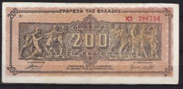Griekenland, 200 Drachmai 1944. licht gebruikte biljetten. nummer kan afwijken