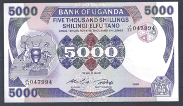 UNC biljet Uganda 5.000 Shilingi 1986 P 24-b