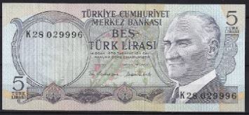 Turkije 5 Lira 1976 unc. nummer kan afwijken