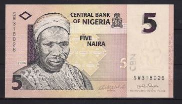 Nigeria 5 Naira 2006 unc. nummer kan afwijken. P 32-a