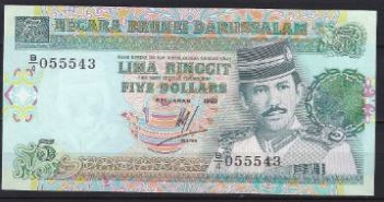 Brunei 5 Ringgit 1993 unc. nummer kan afwijken