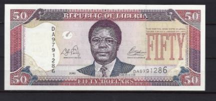 Liberia 50 Dollars 2003 unc. nummer kan afwijken. P 29-a