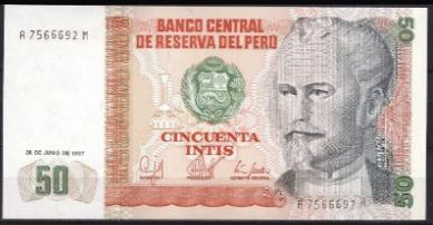 Peru 50 intis 1987 unc. nummer kan afwijken. P 131-b