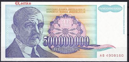 Mooi UNC biljet van 500.000.000 dinara 1993. Nummer kan verschillen.