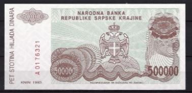 Mooi UNC biljet van 500.000 dinara 1993. Nr. R 23. Nummer kan afwijken.