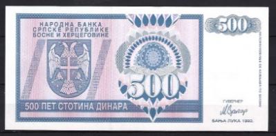 Bosnie-Herzegovina 500 Dinara 1992 unc.