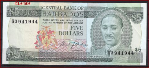 Mooi biljet Barbados 5 Dollars 1975 P 32-a PR/XF+