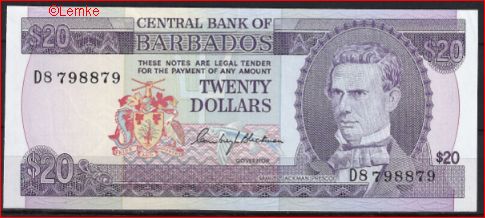 Mooi biljet Barbados 20 Dollars 1973 P 34-a aUNC