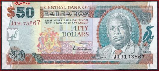 UNC biljet Barbados 50 Dollars 2007 P 70-a