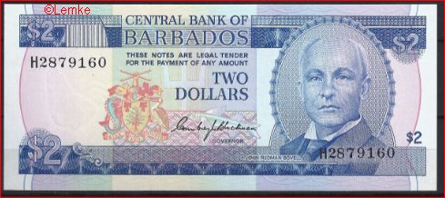 UNC biljet Barbados 2 Dollars 1980 P 30-a