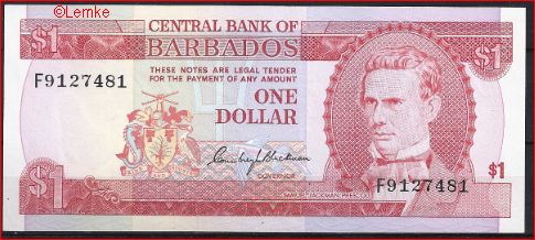 Mooi biljet Barbados 1 Dollar 1973 P 29-a aUNC