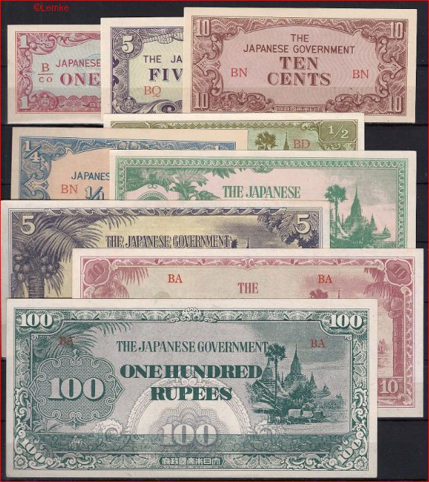 1cent / 100 rupee P9 t/m 17 1942/44 UNC