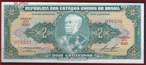 UNC biljet Brazilie 2 Cruzeiros 1958 P 157A-c