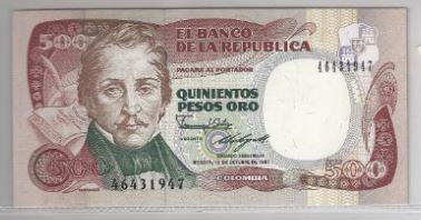 UNC biljet Colombia 500 Pesos Oro 1987 P 431