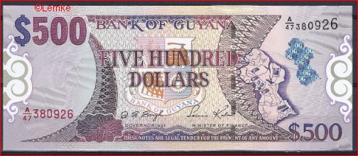 Prachtig biljet Guyana 500 Dollars 2002 P 34-b UNC-