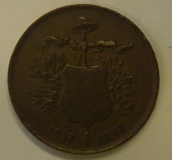 Bronzen penning ter gelegenheid van herdenking 50 jaar geleden binnenrukken van de Kozakken in Utrecht 1813, herdacht in 1863. Geslagen aan ’s Rijksmunt te Utrecht. Zgn. “Kozakkendag” op 25 november. Ø 28 mm