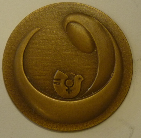 Bronzen penning: Jaar van de Vrouw 1975 door T. van Wijnen. Vz.: Het Vrouwensymbool in artistieke ronding. Kz.: Blanco/ Ø 40,5 mm