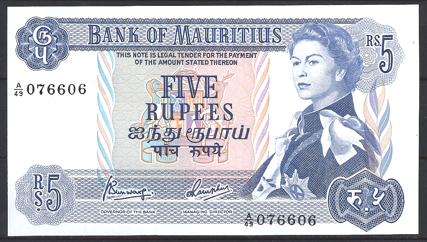 Gebruikt biljet Mauritius 5 Rupees  P 30-c  ZFR