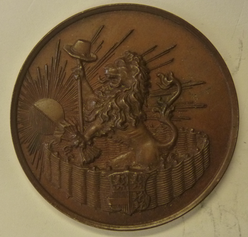 Bronzen medal ter gelegenheid van het Lustrum Universiteit Utrecht 1886. Graaf Jan van Nassau bij Begeer Utrecht. Vz.: Lion with Liberty, hat and bundle of arrows. Ø 42 mm
