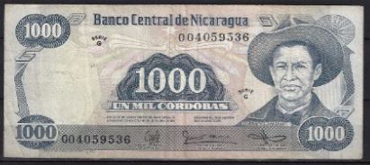 Gebruikt biljet Nicaragua 1.000 Cordobas 1987 P 150 FR