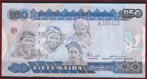 Mooi biljet. Nigeria 50 Naira P 27-a aUNC