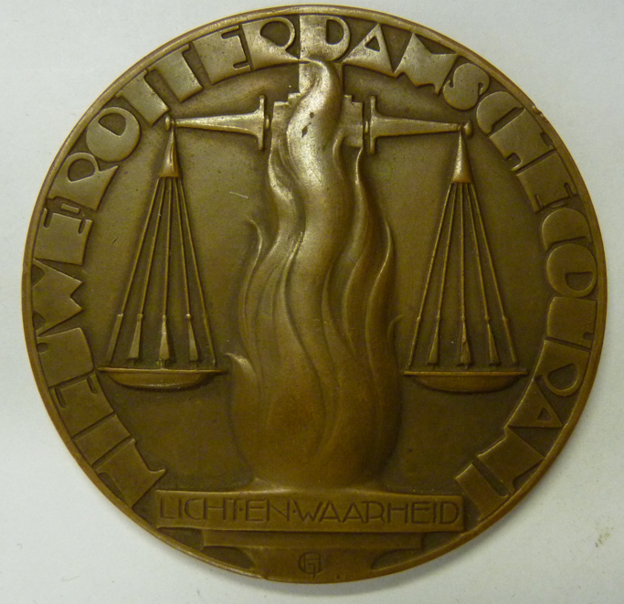 Bronzen gedenkpenning Nieuwe Rotterdamsche Courant vanwege reis naar Amerika en Canada 28/8 t/m 13/10-1931. Ø 60 mm