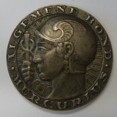 Zilveren eenzijdige penning van de Algemene Bond van Handels- en Kantoorbedienden “Mercurius” door C.J. van der Hoef. Afgegeven op basis van 25-jarig lidmaatschap. Ø 40 mm
