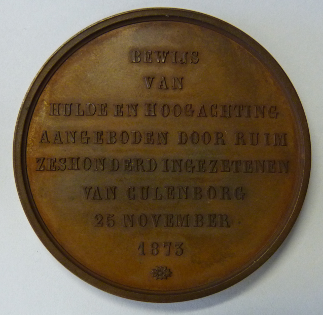 Penning Mr. J.G. Everwijn, Oud-burgemeester Gemeente Culemborg 1873