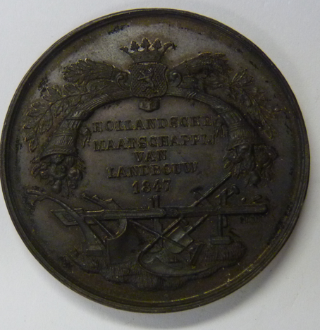 Prijsmedaille Hollandsche Maatschappij van Landbouw 1847.
