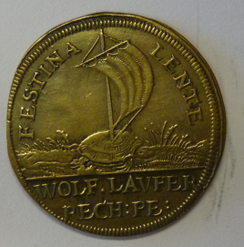 Bronzen rechenpfennige Nurnberg, Germany z.j. Vz.: Hercules naar links, met Kretenzische stier op schouder. Kz.: Schildpad met mast en zeil op zijn rug. Ø 28 mm