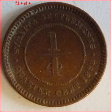 Prachtige munt Straits Settlements 1/4 Cent 1898 in PR/XF KM 14