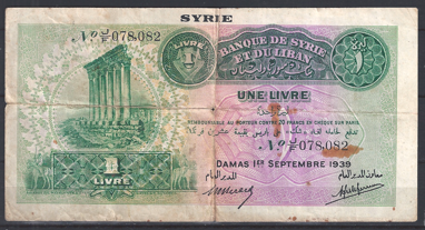 Gebruikt biljet Syrie 1 Livre 1939 FR