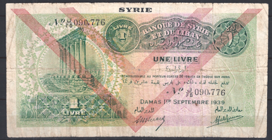Gebruikt biljet Syrie 1 Livre 1939 FR