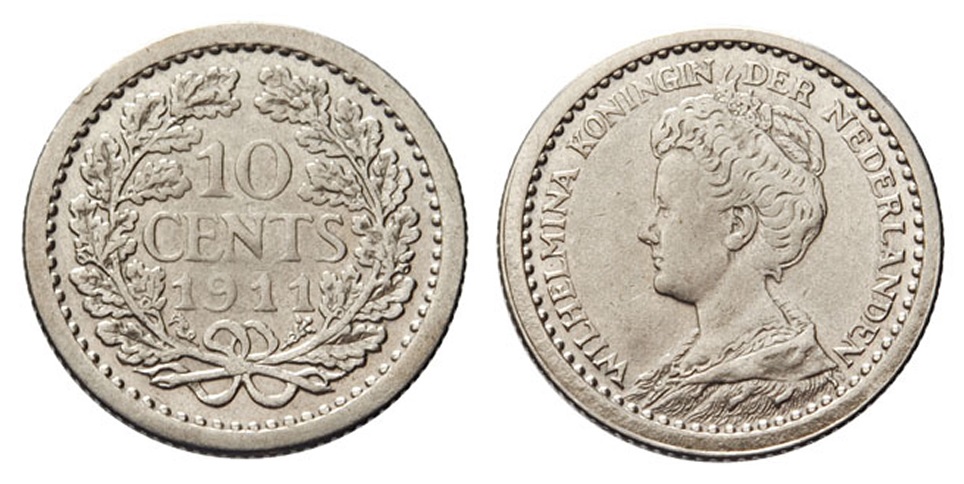 Nederland 10 cent 1918 Wilhelmina ZFR