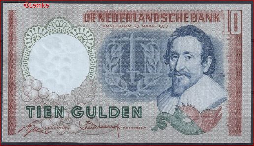 UNC biljet Nederland 10 Gulden 1953 48-1b