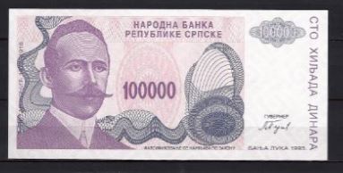 Bosnie-Herzegovina 100.000 dinara 1993 unc. nummer kan afwijken