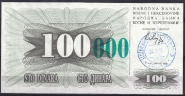 Bosnie-Herzegovina 100.000 Dinara 1993 unc.