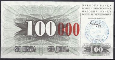 Bosnie-Herzegovina 100.000 Dinara 1993 unc