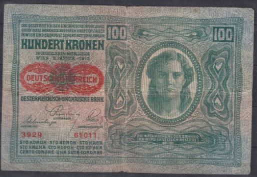 Oostenrijk 100 Kronen 1912. gebruikt biljet. nummer kan afwijken