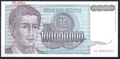Joegoslavie 100 miljoen Dinara 1993 unc, nummer kan afwijken