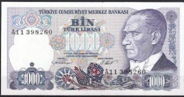 Turkije 1000 Lira 1986 unc. verschillende handtekeningen. nummer kan afwijken